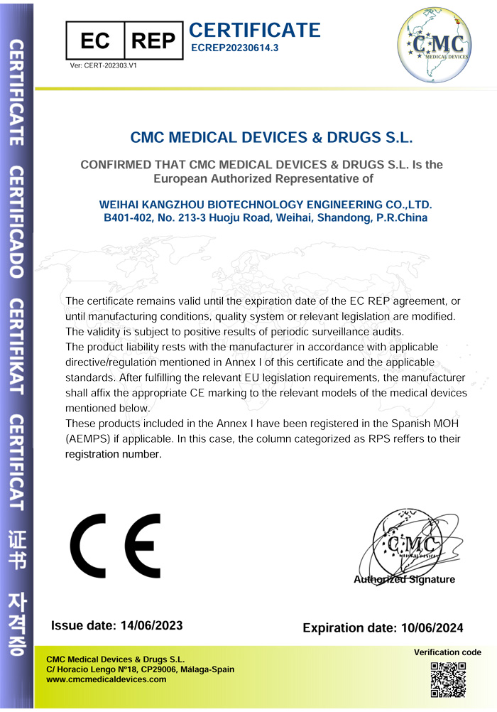 ? ? ?威海康州生物工程有限公司成立于2013年,公司坐落于風景秀麗的海濱小城——威海市。康州生物是集研發、生產和銷售于一體的生物科技公司,與威海哈爾濱工業大學合作研發團隊,擁有先進的科研基地及生產基地。主要從事快速診斷檢測產品的研發、生產、銷售。產品涵蓋:生育檢測、藥物濫用檢測、農藥殘留檢測以及其他臨床診斷檢測等。公司自主研發生產得早早孕試紙,排卵檢測試紙,毒品檢測及疾病檢測等醫用產品,經過歐盟認證,產品質量穩定,值得信賴。